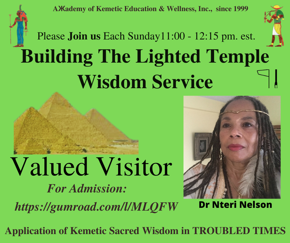 We have been enjoying your Divine Presence and Participation in the “Building The Lighted Temple” Wisdom Service with inspirational teachings by Dr Nteri Nelson, on Sundays, 11:00 am – 12:15 est. We appreciate and thank you for your supportive Contributions which will allow us to continue the Work.